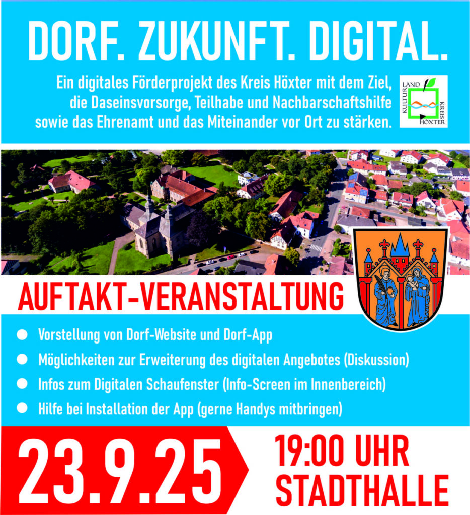 Bitte macht in Eurem Netzwerk Werbung für diese wichtige Auftaktveranstaltung. Eine gut besuchter Auftakt zeigt dem Fördergeber, dass wir als örtliche Gemeinschaft Interesse an der digitalen Verbesserung des Miteinander haben.