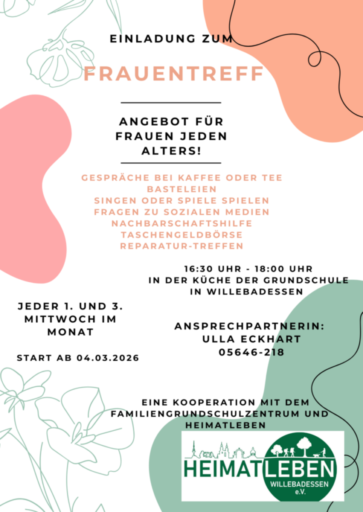 In Kooperation mit dem Familiengrundschulzentrum und Heimatleben findet ab dem 4. März 2026 regelmäßig ein Angebot für Frauen jeden Alters statt.