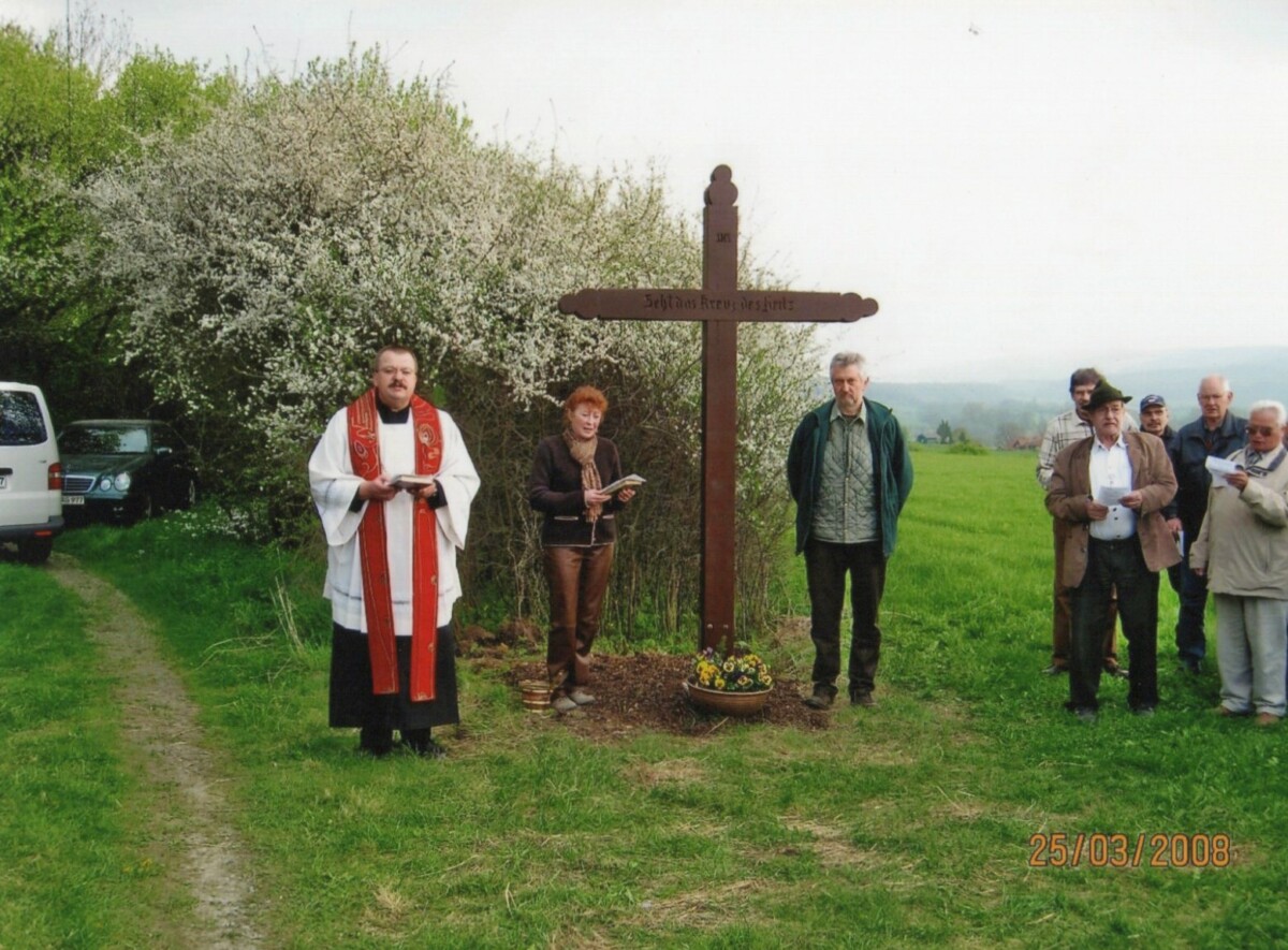 Das Kreuz wurde am 23.04.2009 von Pfarrer Heuel als Erinnerung an diese Kapelle unter Mitwirkung der beiden Kirchengemeinden St.-Vitus Willebadessen und St.-Georg Altenheerse sowie des MGV St.-Josef Willebadessen eingeweiht.