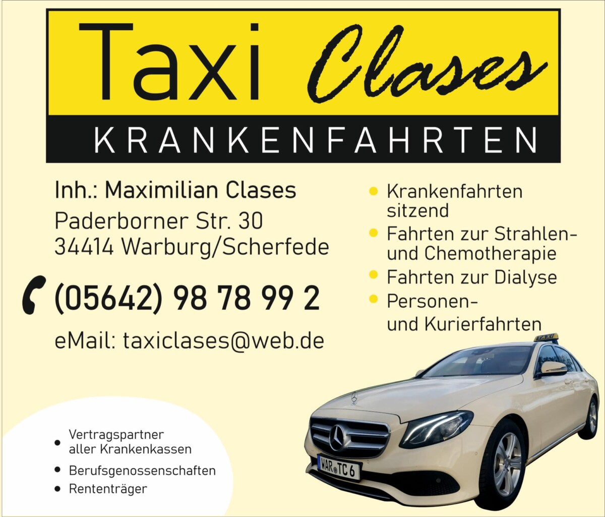 🚖 Taxi Clases – Ihr zuverlässiger Fahrservice in Willebadessen und Umgebung 🚖
