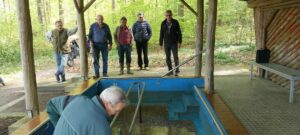 Die Rentnergang hat sich in der letzten Woche etwas Zeit für das Tretbecken genommen. Mit Hochdruckreiniger und Bürsten wurde der Boden von Morast und alten Blättern befreit. Anschließend wurde das Becken mit frischem Quellwasser befüllt.
